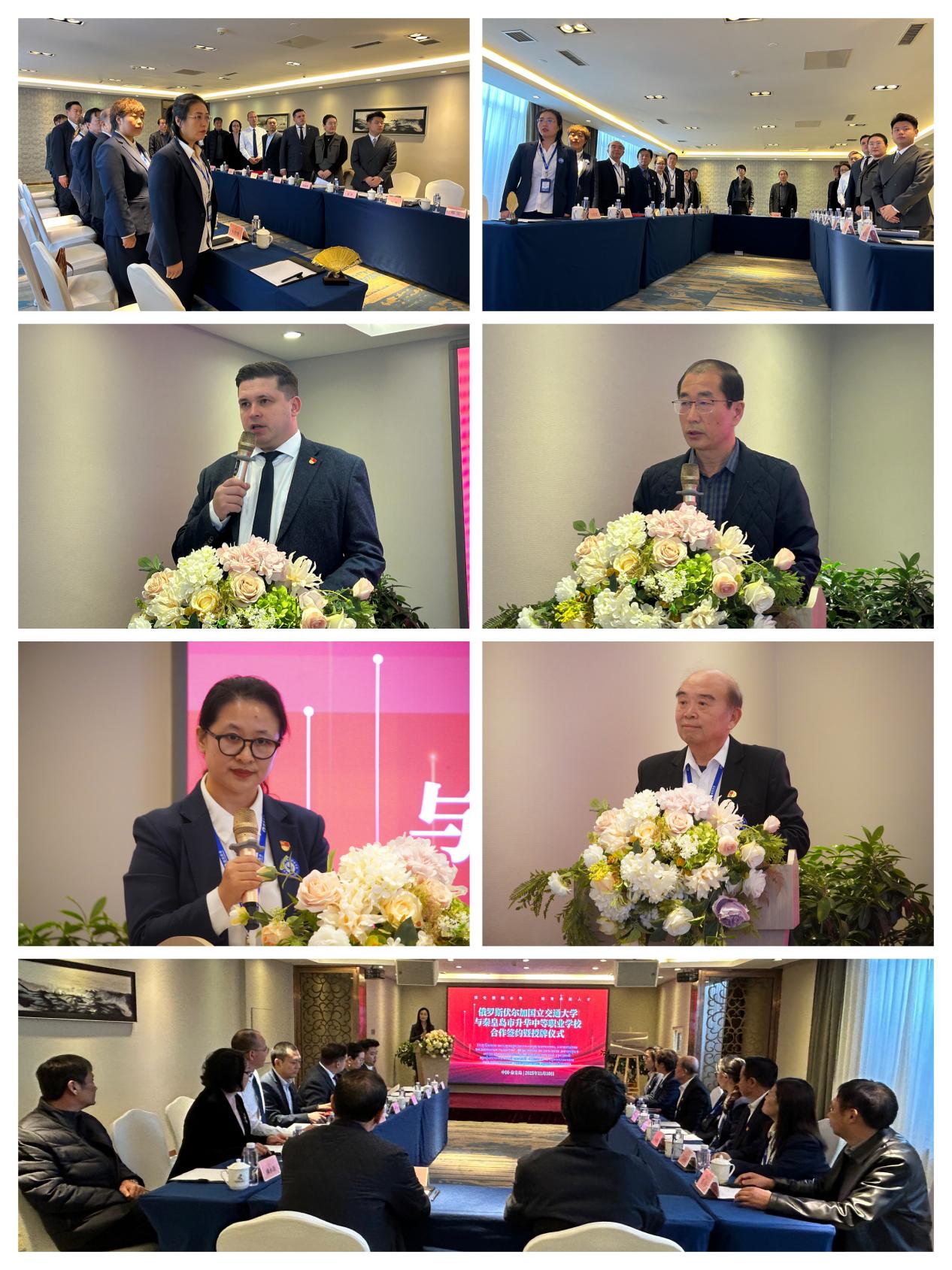 在交流研讨环节中,双方围绕中俄教育领域的合作前景、学术科研、人才培养等方面展开深入交流,达成了多项共识,在与会嘉宾的共同见证下,成功完成了“高本硕贯通培养”项目的合作签约与授牌仪式。会议最后,双方代表互赠礼物并亲切合影,共同记录下这一具有历史意义的时刻。