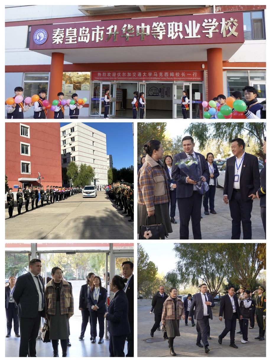 11月10日上午,伏尔加国立交通大学代表团一行访问秦皇岛市升华中等职业学校,校长赵艳、书记李明刚率领副校长及各部门负责人整齐列队,热情迎接远道而来的俄罗斯贵宾。英姿飒爽的国旗护卫队肃立两侧,学生礼仪队员手捧鲜花,用最灿烂的笑容向外宾献上诚挚的问候。