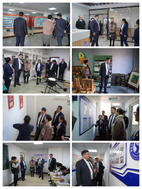 在讲解员的陪同下,外宾一行深入参观了学校的重点实训室、特色专业教室及学生生活区,实地了解了学校在实训教学、人才培养等方面的成果,对学校先进的教学设施和创新的教育理念表示高度赞赏。